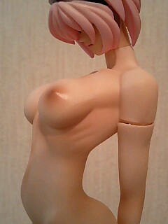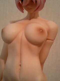 どうしても下半身に接着剤の跡が残るので、ヤスリで削ろうとしたら、塗装まで削れました・・・。がっくり。自分でリペアしてもいいけど、エアブラシ出すのがめんどくさいので、もしかしたら製作代行に頼んで、ついでに乳首と下半身のリアル化を依頼するかもしれません。でも高いからなあ。。。