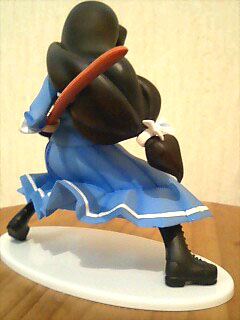 躍動感があるポーズなので空間に広がりを感じさせますが、長い居合刀によってさらにそれを感じます。こんな刀、抜けるのか?と心配になりますが香澄は全世界の人間で10の指に入る強さなのできっと抜けるのでしょう。達人になるほど刀が長くなるって言うし。