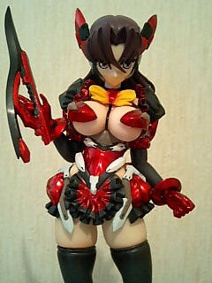 このフィギュアは、胸の柔らか部分から油分が染み出したり、装甲パーツのクリアーレッドがソフビに色移りしたりと難しいフィギュアなのですが、実物を手にしてみると、同人とは思えないボリューム感と造形の素晴らしさで、そんなマイナス面どうでもよくなってきます。